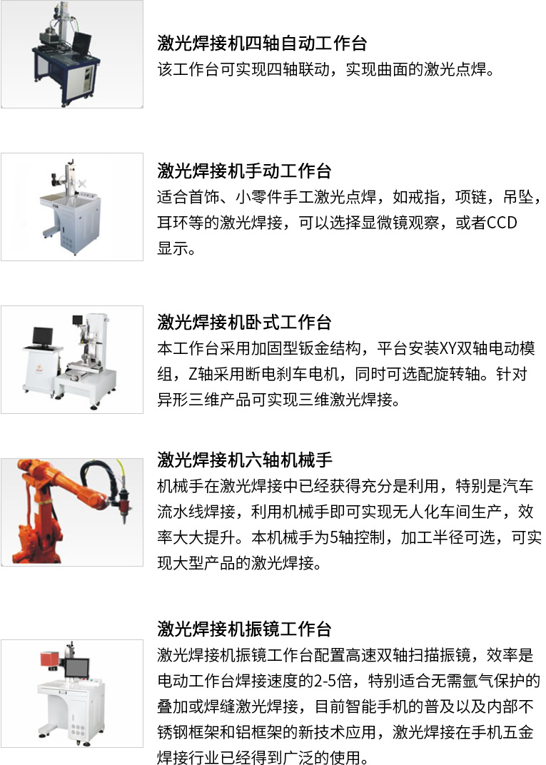應用范圍:適用于醫(yī)療器械行業(yè)、微電子行業(yè)、眼鏡行業(yè)、數(shù)碼組件、其他五金行業(yè)的組件的激光焊接加工。